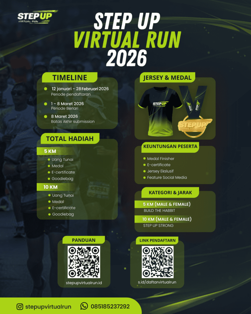 Waktunya melangkah lebih jauh dan jadi bagian dari STEP UP VIRTUAL RUN 2026 ✨